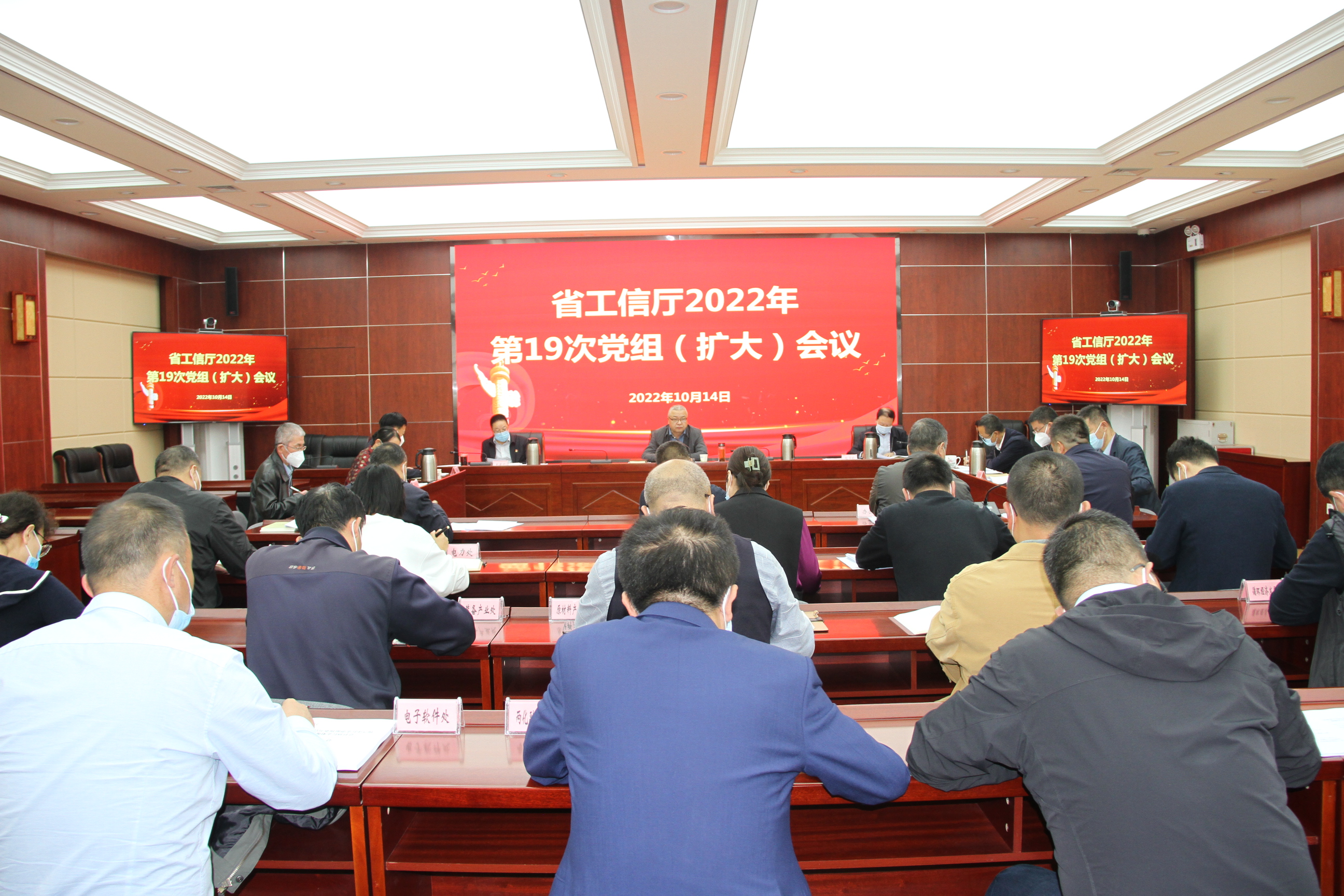10月14日,省工信廳召開黨組會議,專題傳達學(xué)習(xí)《中共中央辦公廳關(guān)于印發(fā)〈推進領(lǐng)導(dǎo)干部能上能下規(guī)定〉的通知》,廳黨組書記、廳長盛云峰同志主持召開會議并講話,廳黨組成員、一二級巡視員、廳機關(guān)各處室及部分廳屬單位主要負(fù)責(zé)同志參加會議。